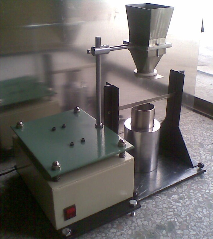 四、仪器由电动振动器、不锈钢加料器、不锈钢漏斗、不锈钢筛网、不锈钢量杯、杯架、刮平器、工作台、秒表、电气控制箱组成。转速可调,仪表数字显示。