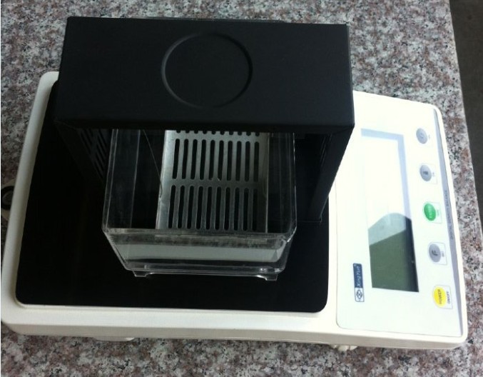 ①将盛有样品的烧杯放于测量放置板上,扣除挂钩的重量。